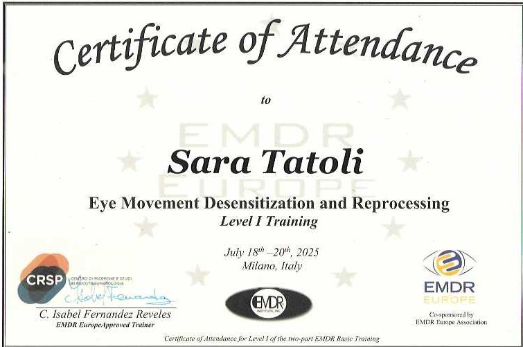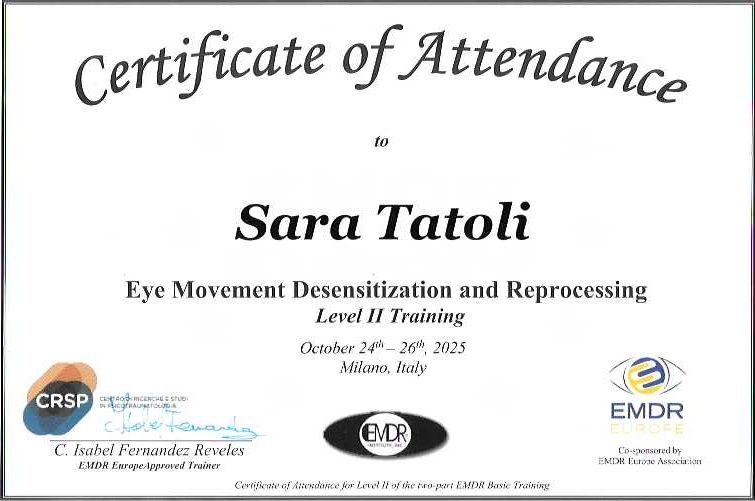 Sono la dott.ssa Sara Tatoli, psicologa clinica e psicoterapeuta in formazione.